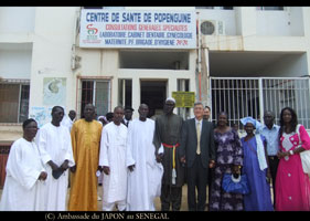 Le 24 août 2012, Monsieur Masato FUTAISHI, Ministre–Conseiller de l’Ambassade du Japon au Sénégal, Docteur Ousmane BA, Médecin Chef de District Centre de Santé Popoguine et le responsable du projet, Docteur Mandiaye LOUM, le conseiller technique N°1 du Ministère de la Santé, Docteur Omar SARR, et le Médecin chef de région de Thiès ont procédé à l’inauguration des infrastructures et équipement du projet d’Aménagement du service Radiographie de Centre de Santé Popoguine, situé au village de Popoguine, réalisés avec un financement du Japon du montant d’environ 49 millions de FCFA (74,599 euros) dans le cadre du Don aux projets locaux contribuant à la sécurité humaine.