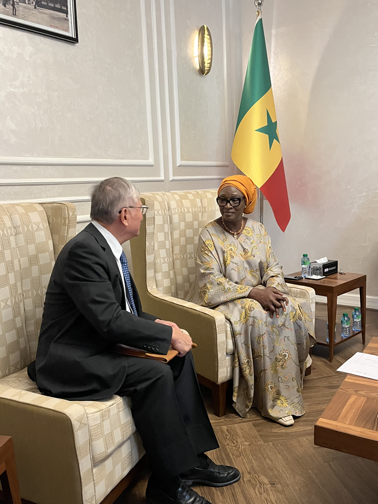 赤松大使によるファルアフリカ統合・外務大臣への表敬訪問 令和7年8月5日 8月5日、赤松大使はファル・アフリカ統合・外務大臣を訪問し、今月末に開催されるTICADに向けた準備をはじめとする二国間関係について話し合いました。