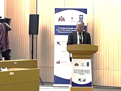 On January 27, Ambassador AKAMATSU Takeshi attended an award ceremony in Banjul, the capital of The Gambia, for the "Project for Promoting Sustainable and Inclusive Peace through Comprehensive Empowerment of Women and Youth." The project is funded by the FY2024 TICAD supplementary budget and was organized by the United Nations Development Programme (UNDP) Gambia office.
