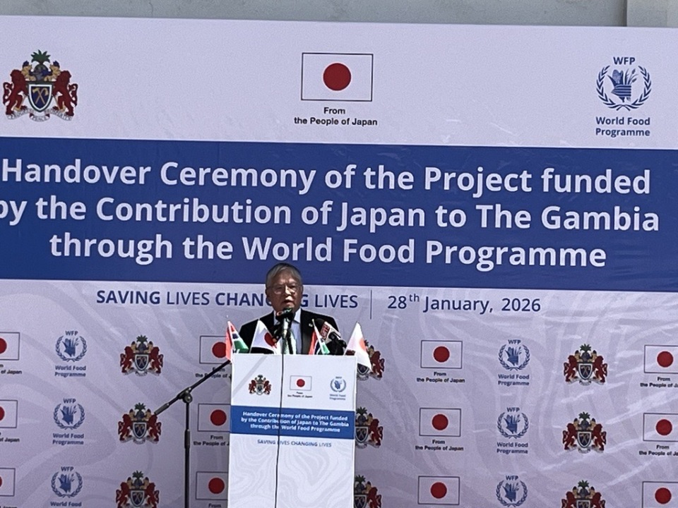 On January 28, Ambassador AKAMATSU Takeshi attended the handover ceremony for the "Emergency Food and Nutrition Support for Flood-Affected Communities in The Gambia" project. The event, held in the capital city of Banjul, was hosted by the World Food Programme (WFP) Gambia Country Office and funded by Japan’s FY2024 supplementary budget.
