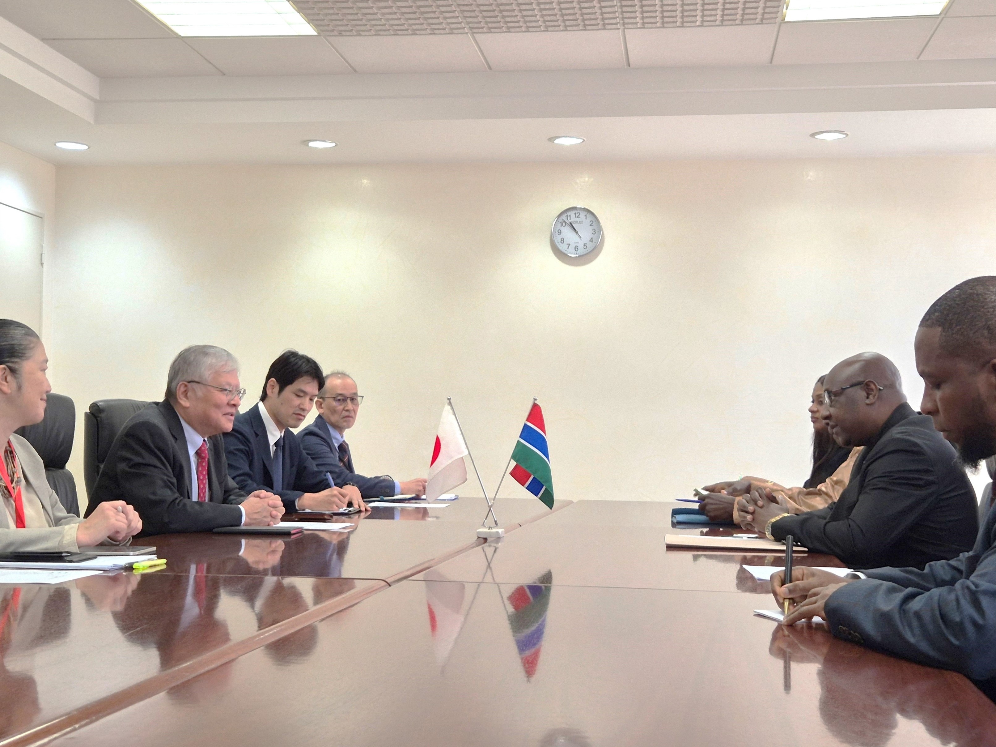 デンバ・サバリー・ガンビア農業・畜産・食料安全保障大臣による表敬訪問 令和8年1月21日 1月21日、赤松大使はデンバ・サバリー農業大臣をはじめとするガンビア代表団を迎えました。両国の友好関係を確認するとともに、農業分野における協力や食料安全保障の強化について意見交換を行いました。 日本は、引き続きガンビアの持続可能な発展に向け、ガンビア政府と連携しながら協力を進めていきます。