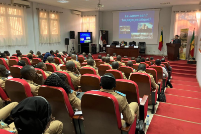 L'Ambassadeur AKAMATSU a déclaré qu'il espérait que l'expérience unique de la reconstruction du Japon après la Seconde Guerre mondiale inciterait les étudiants sénégalais, futurs responsables des services publics, à approfondir leur réflexion sur la paix et la stabilité.
