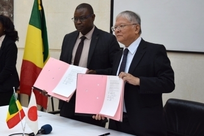 草の根・人間の安全保障無償資金協力「トゥーバ・ボイエーヌ=チャーレン村公立小学校教室建設計画」「ジュクル市4集落ソーラーポンプ設備整備計画」署名式