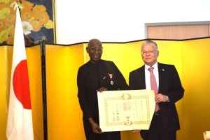 パパ・ゲイ氏は、日セネガル友好協会(ASENI)を設立しました。さらに当地における日本語講師やJICAでの勤務を通じて日・セネガル間の総理会の促進へ多大な貢献を行いました。その功績から、令和7年春の外国人勲章で旭日小綬章を受章しました。